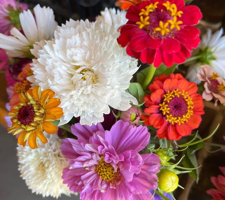Mixes of our favorite flowers are available. We especially love our Zinnias and sunflowers.